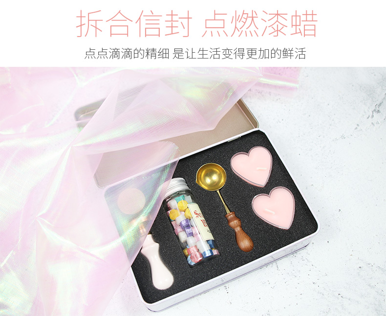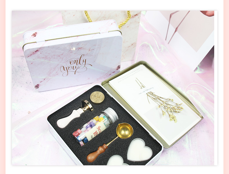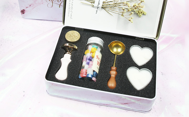 马卡龙铁盒印章头蜡粒套装